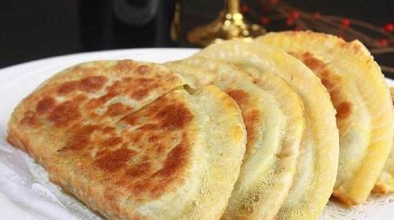 然后揉成面团,揉的时候稍用些力气,让它更筋道一些。另外数量较少的那份面粉,加入食用油,同样混合均匀,揉成酥面团。接着把两个面团分别做成剂子。再把酥面的面团包在普通面团的里面,擀成面皮。先用擀面杖把剂子顺着同一个方向擀成长方形,再把这个长方形卷起来,压扁,再次擀。重复这个动作两三次。再次就是放馅了,把馅放在面皮的中间,两边要留出2到3厘米的距离。然后把面皮的两边对折。用手按压,封好口。也可以做出一些好看的花边。最后放入油锅或者烤箱里,用中小火烧至,直到两面都是金黄色,关闭火,再热三四分钟,不然里面的馅会不熟。