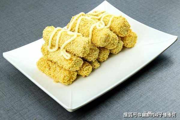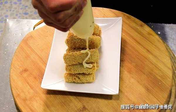 6.然后把炸好的山药进行摆盘,最后再挤上沙拉酱,即可食用。