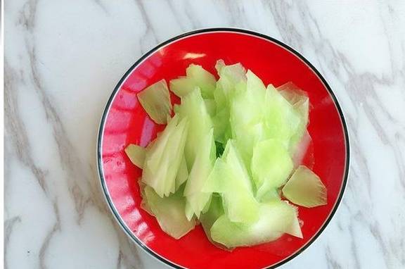 二、莴笋去皮洗净,切薄片装入盘中;