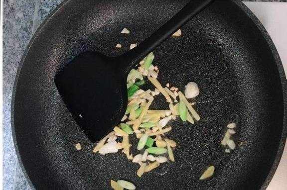 五、锅内加入少许油,烧热后倒入姜蒜葱末煸香;