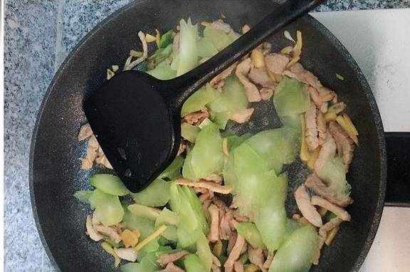 七、接着倒入莴笋,快速拨开翻炒片刻;
