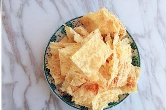 三、腐竹切块装入盘中;