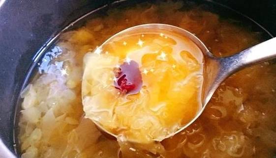 如果有专门炖银耳的锅那做起来会比较方便,如果没有准备一个砂锅,或电饭煲。加满清水,凉水的时候就放入银耳。大火煮开,然后改小火煮15分钟。15分钟后,关火、最后再放入枸杞焖5分钟,就可以关乎了。保证出胶好,营养丰富,口感好喝。