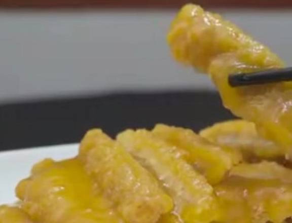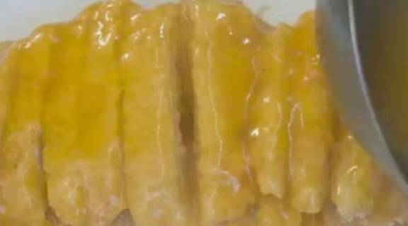 5、炸制时油温不宜过高,否则会造成外面金黄,内部不熟;保持5成油温即可;