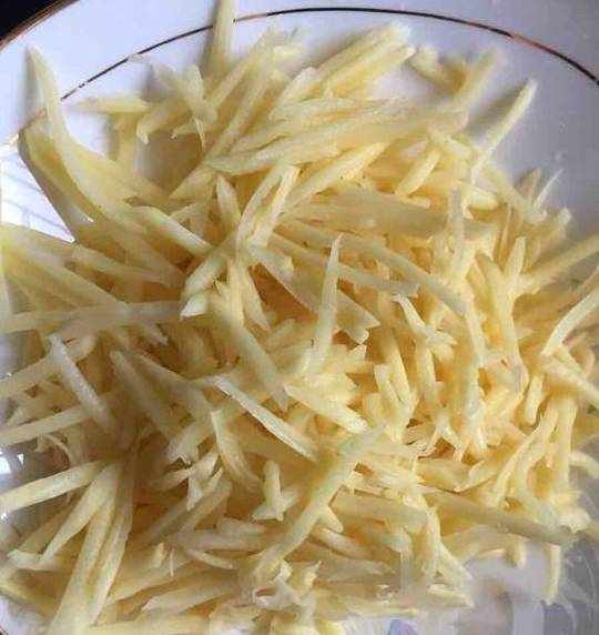 1.土豆削皮,切丝,刀工不好,只能切成条状,敬请原谅