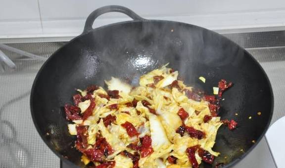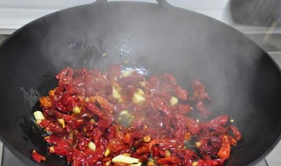 再下干红辣椒炒。