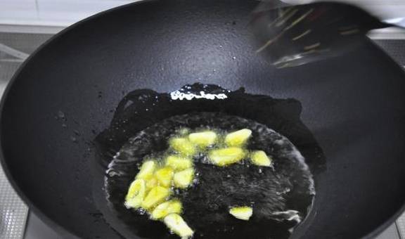 炒锅热锅凉油,下蒜瓣。
