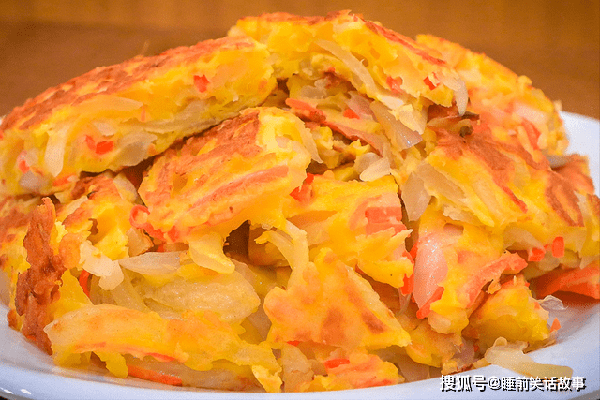 3分钟以后,在饼上淋一层植物油,然后我们把饼翻一下面,这时饼的底面已经烙成金黄色,翻过来之后再烙2分钟,饼两面都呈金黄色时即可出锅,这道简单家常的洋葱早餐饼就做好了。