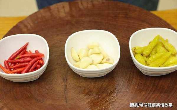 准备一些野山椒和小米椒,分别切成段,再切的蒜片备用。