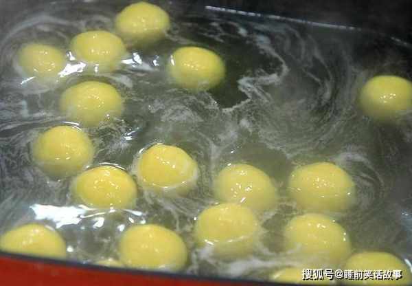 锅内烧水,水烧开以后下入红薯丸子,盖上锅盖煮5分钟就可以了。5分钟以后,红薯煮熟捞出来,放入盆中备用。