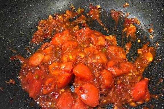 4、不加醋用西红柿代替其中的酸味,不加糖用醪糟增添其中的甜味,因为郫县豆瓣酱和老抽都是咸味的,就不用放盐了,也可以根据自己的口味酌量加盐。