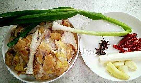 配料:鸡1只、小米椒8个、青蒜苗1棵、油适量、盐少许、生抽2汤勺、老抽1汤勺、五香粉少许、大葱1小节、姜1小块、蒜3瓣、八角2个、冰糖6颗、花椒少许烹饪步骤:1.鸡提前剁块、洗净,葱、姜、蒜、小米椒、八角、青蒜苗洗净。