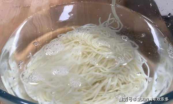 第四点:面条不用煮全熟,八成熟捞起来过冷水。