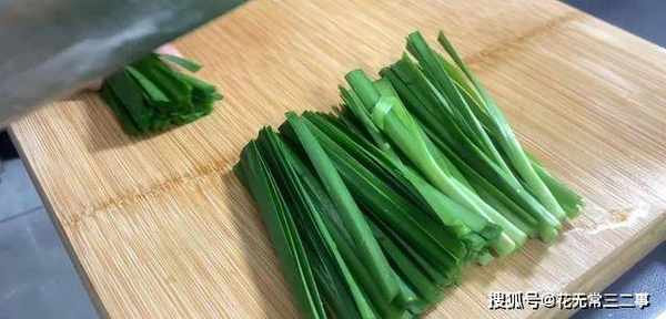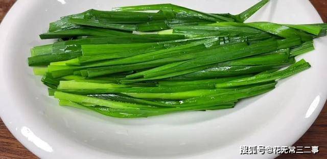 3.韭菜切5厘米小段,装盘备用。