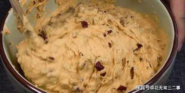 8.面糊醒发好,排出空气,倒入果干,搅匀。
