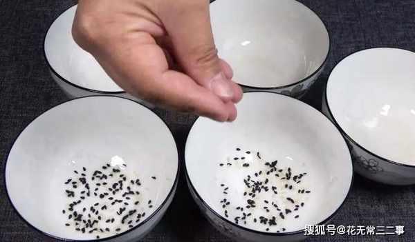 9.碗中撒食用油,撒上黑芝麻。