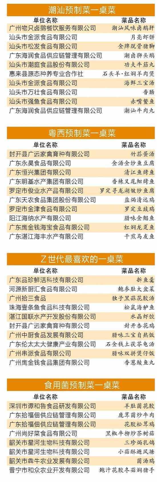 经过三个多小时的紧张角逐,“十大粤味预制菜擂台赛”现场公布了总决赛的入选名单,共评出“十大粤味预制菜”“广府预制菜一桌菜”“客家预制菜一桌菜”“潮汕预制菜一桌菜”“粤西预制菜一桌菜”“Z世代最喜欢的一桌菜”“食用菌预制菜一桌菜”,共有68个预制菜最终入选。