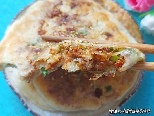 第十步:一道好吃的公婆饼就做好了,外皮非常的酥脆,肉馅香气扑鼻,加上酱香、蒜香、芝麻香,比普通的馅饼要好吃多了。