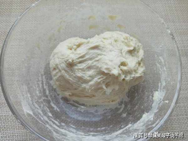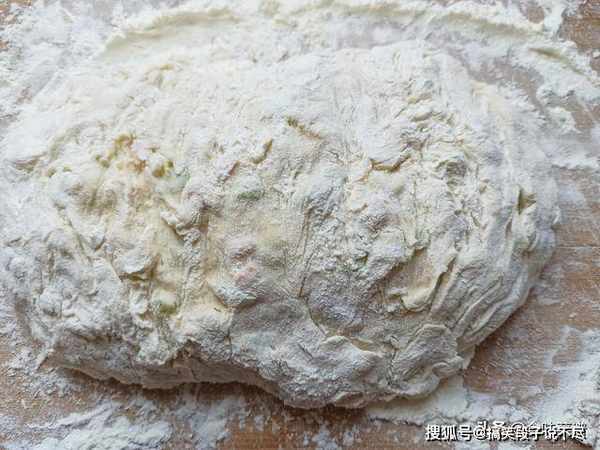 2、下手揉成光滑的面团,多花上几分钟,面越软饼越好吃,如果感觉黏手,可以抹点油,盖上一层保鲜膜,静置饧发30分钟。