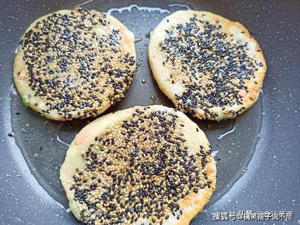 14、等待两面金黄色即可出锅,再关火焖3分钟,让饼的内部充分熟透,口感酥脆而不腻,太好吃了。