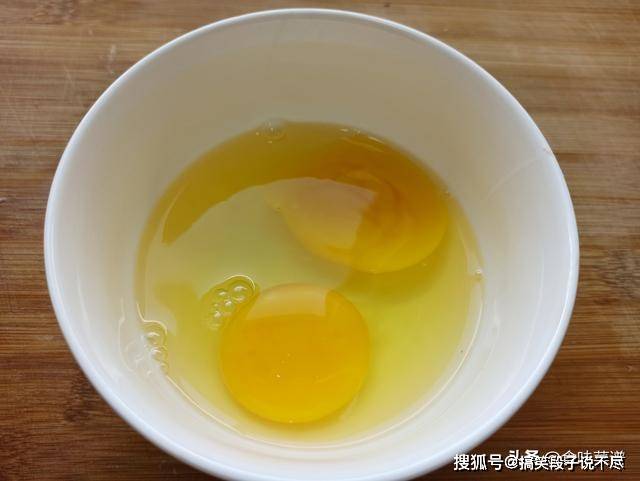 2、另外准备一个空碗,打入两个鸡蛋,充分搅拌成蛋液。