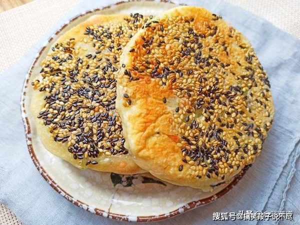 10、一道好吃的发面饼就做好了,一定要趁热吃,色泽金黄,表皮酥脆,光闻着味就流口水了,咬一口浓浓的芝麻香味,发面制作的,很容易消化,小朋友第一次吃了3个,不撑不罢休。