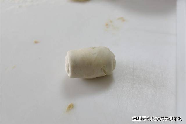 5、这是卷好之后的样子,再次擀扁。