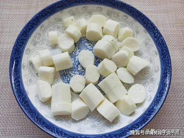 2、去皮后洗净,切成小段,放入蒸锅中,蒸上15分钟,筷子可轻松的扎透即可。