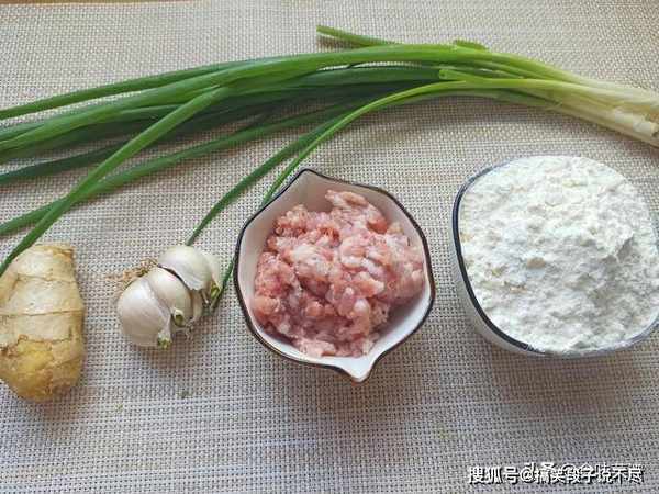 1、碗中加入适量的面粉,用刚离火的开水烫面,水温大约80度,边倒边搅拌,一直搅出面絮状态,烫面可降低面团硬度。