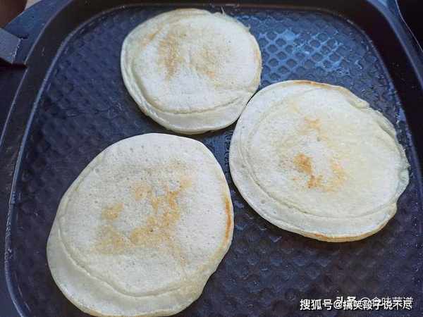 9、等待时间到了,再翻另外一面,烙上2分钟,然后每隔1分钟翻一次,让饼保持受热均匀,等到两面金黄,按下有弹性,即可出锅了。