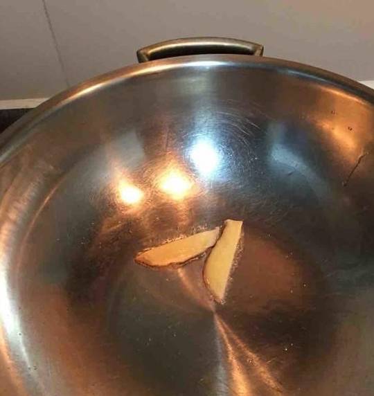 2.锅内倒入一些油,放入姜片。