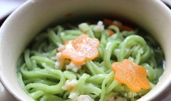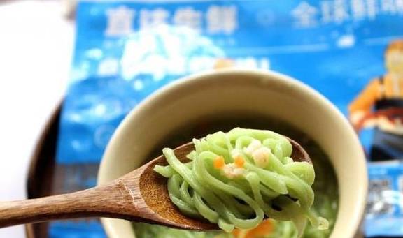 有着磷虾的鲜美,碧绿的面条,营养足足的。