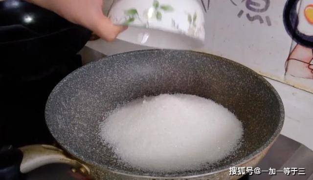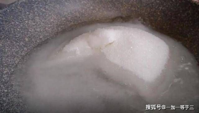 7、一开始先用大火烧开,不断的翻炒姜片,直到砂糖融化,出现小气泡。