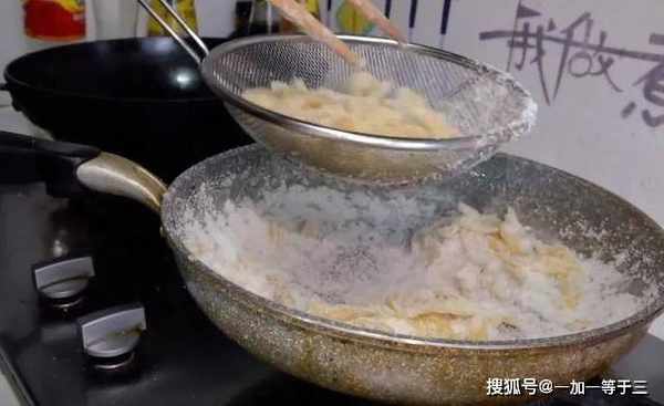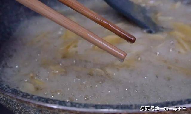 11、这时候,继续翻炒3分钟即可,用漏勺,将姜片捞起来,抖掉多余的砂糖。