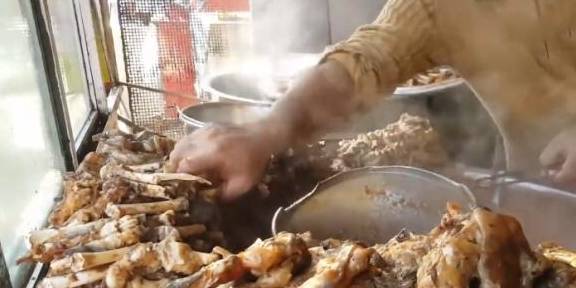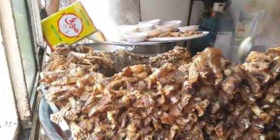 走进之后,发现大叔的锅面前,堆满了很多的骨头,看清后,才知道是羊蹄,很小一个,并不大,看着已经被煮熟了,并且锅中的汤汁很香,其实做的并不是很精致,但可能味道很不错吧,毕竟来吃的人太多了,就连很多顾客宁愿站着吃,当时小七果断拿了三个,估计才可以吃饱吧,花了24元,也就是说8元一个,这个价格还算是比较便宜吧。