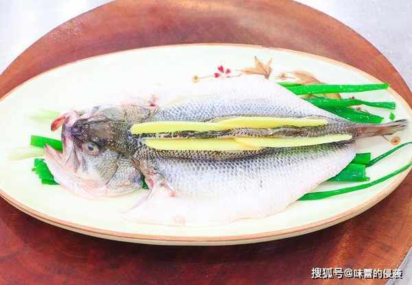 2.把葱段摆放在盘底,姜片塞在鱼背中即可,尽量最大程度地保留鱼的原汁原味,需要注意一点不能放盐,食盐会使鱼肉中的水分流失,葱、姜本身能够避腥增鲜,料酒也可以不放。