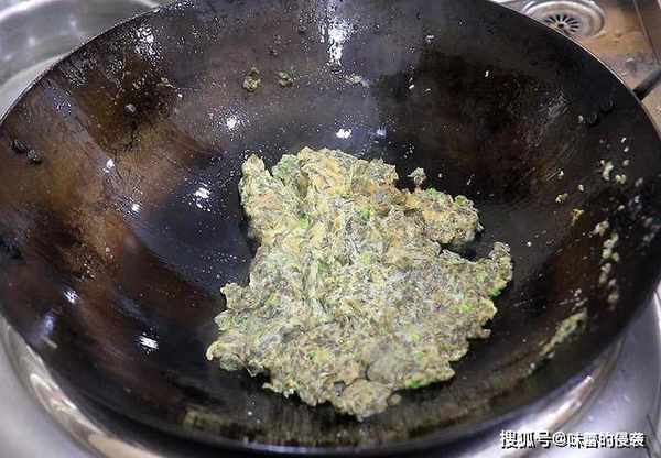 4.先把蛋液煎成一个金黄的蛋饼,再用勺子打散,把里面的蛋液煎熟即可出锅,这道鲜嫩可口的紫菜炒鸡蛋就做好了。