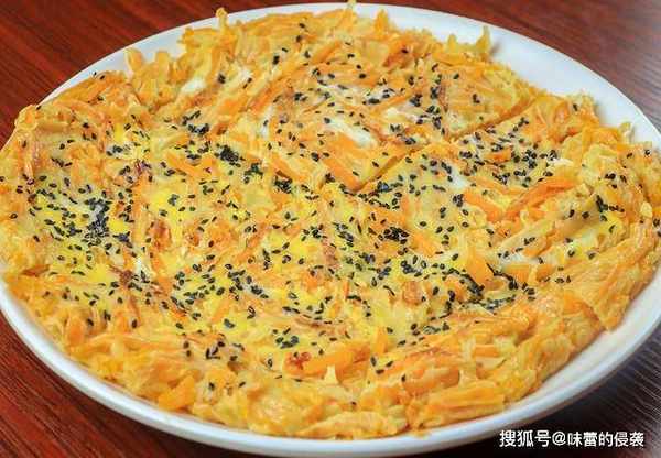 3.蛋液全部定型以后,把它翻过来再烙2分钟,烙制时盖上锅盖,能充分保留饼内部的水分,更容易烙熟,口感更加柔软,时间到即可关火,这道营养丰富的南瓜丝煎饼就做好了。