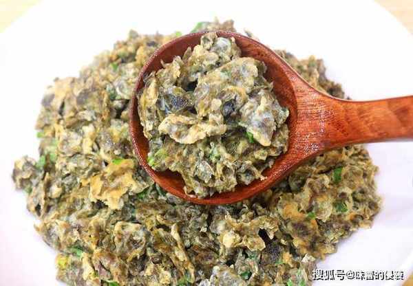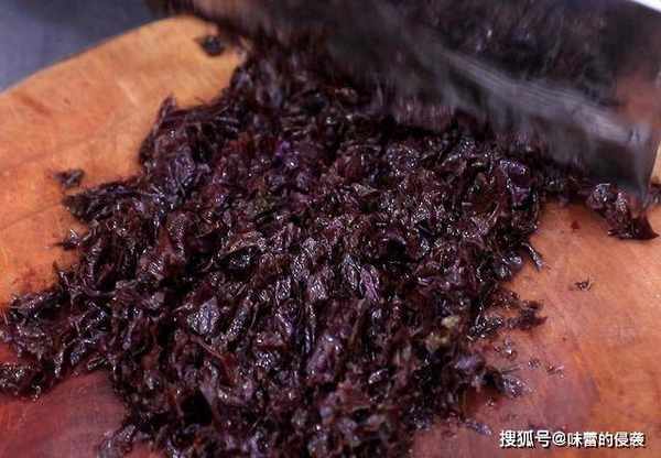 1.准备一把紫菜,用清水泡开,把上面的灰尘和杂质洗干净,用力挤出里面的水分,切碎一些 放入盆中。