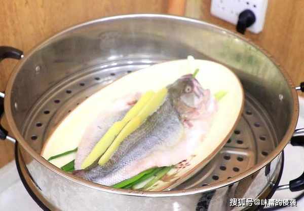 3.蒸这一步非常重要,讲究水宽、火旺、蒸汽足,所以必须全程大火,中途不能掀锅否则肉质不够鲜嫩,蒸锅中上大气以后放入鲈鱼,一斤左右的鲈鱼蒸7分钟就可以了,蒸的时间久了肉质容易变老。