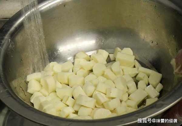 2.切好以后放入盆中,加入清水、少许白醋再清洗一遍,充分洗干净以后加入少许食盐增加底味,撒入适量的面粉拌匀,使每一个山药块都裹上面粉,面粉不要太厚以免影响口感。