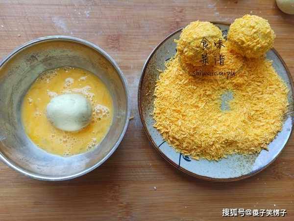 食材:糯米粉、面粉、红薯、鸡蛋、面包糠