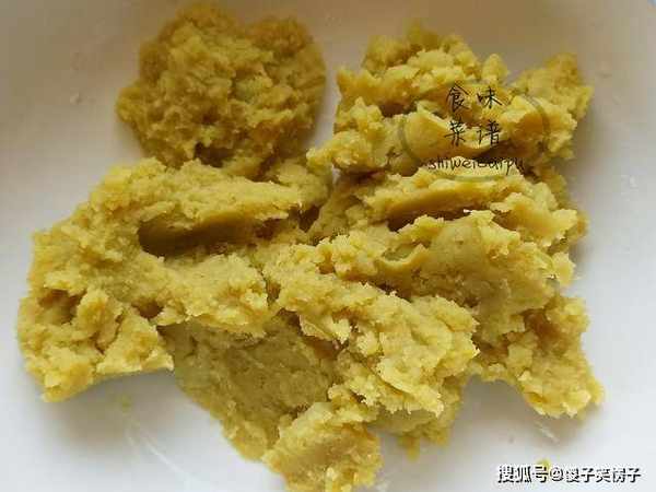这时加上一勺白砂糖,趁热捣成红薯泥,越细越好,请根据个人口味来,红薯本来就有糖分,不喜太甜的可不放。