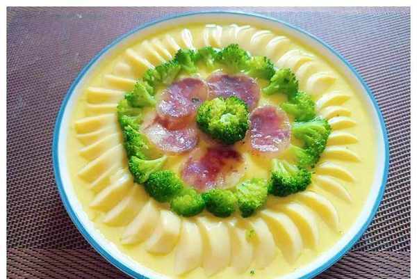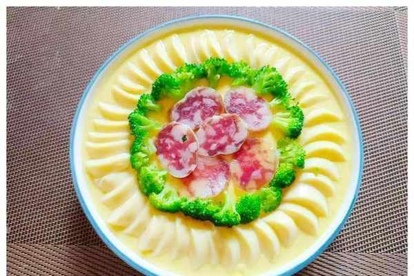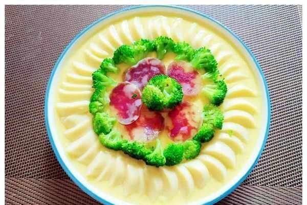 宝妈今天给大家推荐的是蛋羹,像果冻一样嫩滑的蛋羹,营养丰富,价格低廉。众所周知,小孩子的胃口不大,所以我们在做蛋羹的时候,不能只做蛋羹,还要加入一些配料来增加营养。比如我们可以做蛤蜊蛋羹、肉末蛋羹、平菇蛋羹、虾仁蛋羹等等。这次做了西兰花日本豆腐香肠蛋羹,用料更多,营养加倍,而且味道不错。