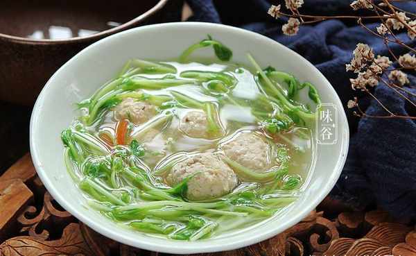 4、丸子定型后,转大火煮,用勺子撇去浮沫,煮至丸子微微浮起,再将豆芽放入锅中煮熟。