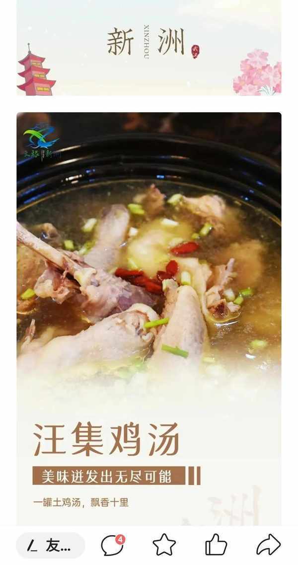 到了上个世纪八九十年代,据说一个又老又丑又脏的老太婆,在汪集镇开店卖汪集鸡汤。经过数年打拼,汪集鸡汤成为风味独特、汤鲜味美的“楚天第一汤”,成为湖北地方名菜之一,也成为新洲区的一个特色产业。汪集镇就有汪集鸡汤一条街。可见这个老太婆功德无量。