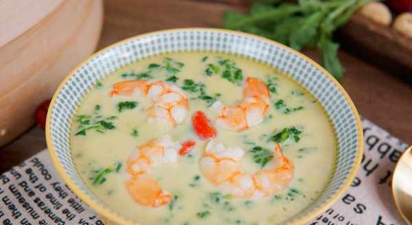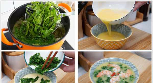 原料:荠菜、鸡蛋、虾仁、盐适量。