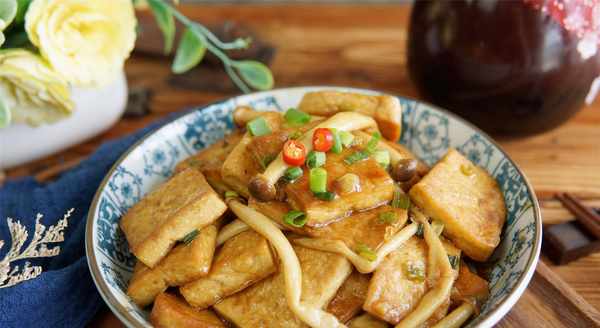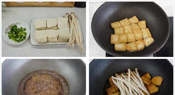 材料:豆腐、蟹味菇、红葱头、生抽、蚝油、糖、醋、淀粉、盐、鸡精。