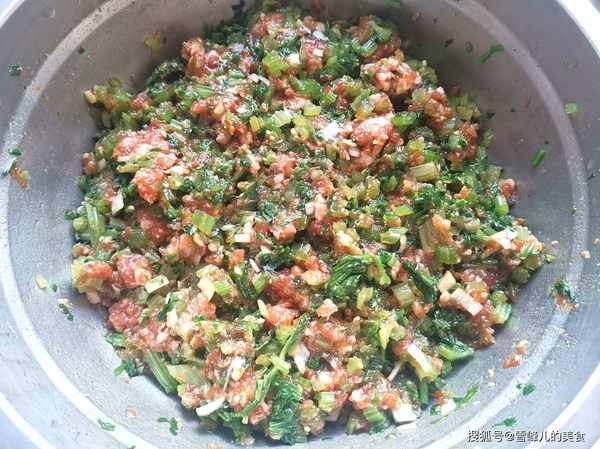 第二步:肉馅中加入生抽酱油、盐,姜末拌匀,再加入花生油和葱末充分的拌匀,最后把芹菜稍微汆烫剁碎加入到肉馅中,芹菜汆烫以后捏去多余的水分剁碎,直接加入到肉馅中拌匀即可,不用再捏去水分,这样做成的馅料就会多汁,如果芹菜捏的太干,包出的饺子就会汤汁很少。芹菜被称为是“厨房里的降压物”,它不仅是一种蔬菜,还有很高的药用价值。它主要针对肝热烦躁、黄疸、高血压有很好的作用,一年四季都不要忽视了芹菜,尤其中老年人更要多吃。
