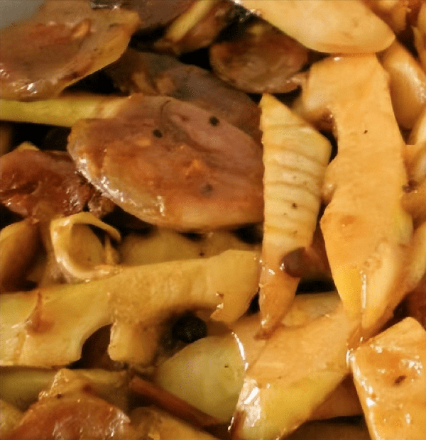 食材:春笋、亲亲阿嬷香肠、豆瓣酱、味精